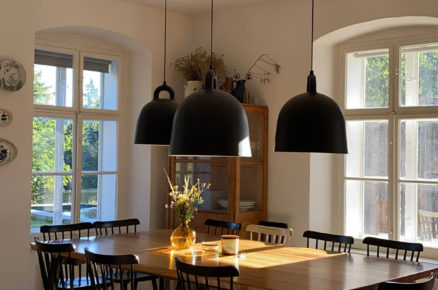 Ilona řešila židle Ironica v retro stylu, pro manžela Davida byla důležitá světla. Právě on si přál, aby v jídelně visela trojice svítidel vytvářející dominantní prvek. A musíme přiznat, že se mu to podařilo.
